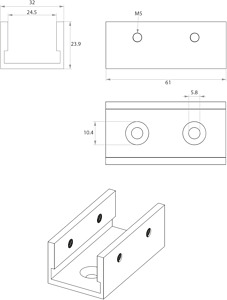 Befestigungsschiene für Aluprofil 68025 mit zwei Befestigungslöchern und 4 seitlichen M5 Gewinden zur arretierung am Aluprofil Die Befestigungsschiene muss auf das Aluprofil aufgeschoben werden