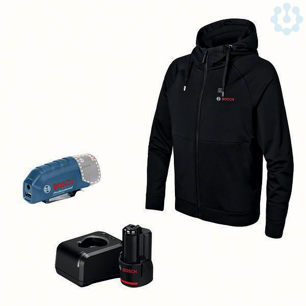 Beheizbarer Hoodie GHH 12+18V XA M, Akkuadapter GAA 12V-21 Professional (0 618 800 079); Ladegerät GAL 12V-20 Professional; 1 x Akku GBA 12V 2.0Ah (1 600 Z00 02X)