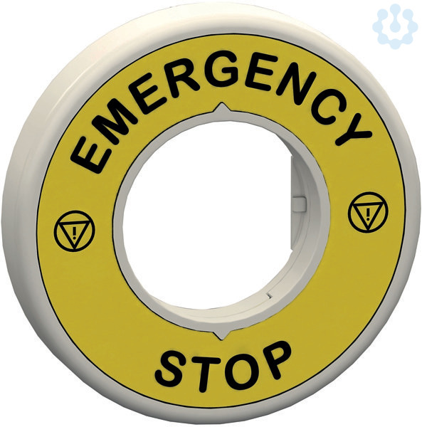 Harmony XB5 Baureihe. Beleuchtbares Schild für Not-Aus/Not-Halt-Taster der Baureihen XB4, XB5 und XB7. Die Beleuchtung ist 1-farbig, LED rot. Versorgungsspannung 24V ACDC. Beschriftung Emergency Stop. In Kunststoffausführung. Stoßfestigkeit IK03. Umgebungstemperatur von -40 bis +70 Grad C. Schutzart bis IP69K, Internationale Standards IEC, UL, CSA, EAC, CE Kennzeichen.