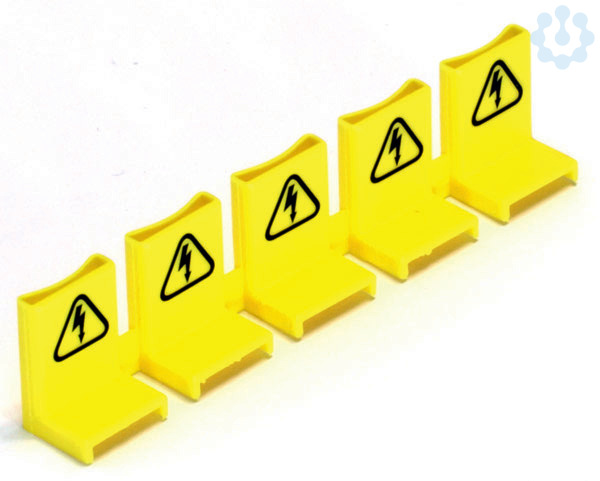 Berührungsschutz für nicht genutzte Anschlussfahnen von Phasenschienen Diese sind für 5 Teilungseinheiten einzeln abtrennbar und in der Farbe gelb verfügbar.