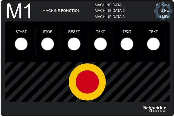 Beschriftungsfeld/Legendenfeld zum Aufkleben hinter die Befehls- und Meldegeräte wie z.B. Drucktaster, Leuchtmelder, Wahlschalter aber auch HMIs oder weitere Steuergeräte. Kundenspezifisch angepasst mit dem Harmony Online-Konfigurator. Individuelle Anpassungen möglich wie Beschriftungen, Bedruckungen, Farbgebungen. Mit der Kombination des Beschriftungsfeldes und den modernen Befehls- und Meldegeräten der Baureihe Harmony sorgt man für einen attraktiven, neuen Stil.