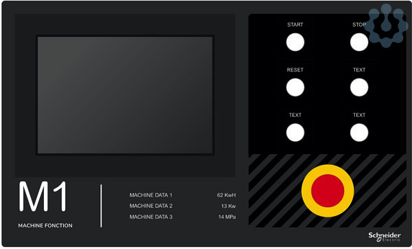 Beschriftungsfeld/Legendenfeld zum Aufkleben hinter die Befehls- und Meldegeräte wie z.B. Drucktaster, Leuchtmelder, Wahlschalter aber auch HMIs oder weitere Steuergeräte. Kundenspezifisch angepasst mit dem Harmony Online-Konfigurator. Individuelle Anpassungen möglich wie Beschriftungen, Bedruckungen, Farbgebungen. Mit der Kombination des Beschriftungsfeldes und den modernen Befehls- und Meldegeräten der Baureihe Harmony sorgt man für einen attraktiven, neuen Stil.