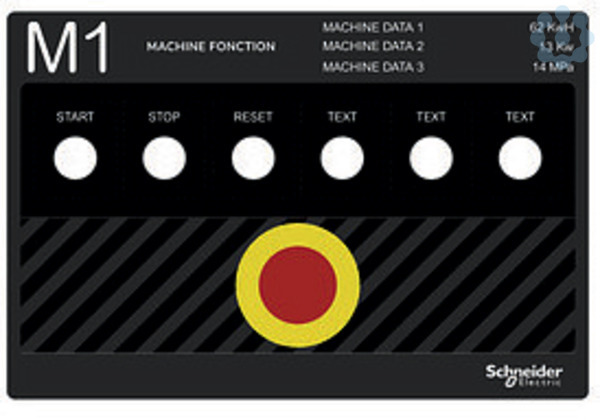 Beschriftungsfeld/Legendenfeld zum Aufkleben hinter die Befehls- und Meldegeräte wie z.B. Drucktaster, Leuchtmelder, Wahlschalter aber auch HMIs oder weitere Steuergeräte. Größe 300x200mm. Das Beschriftunsgfeld hat eine bereits vorgefertigte Beschriftung bzw. Layout. Mit der Kombination des Beschriftungsfeldes und den modernen Befehls- und Meldegeräten der Baureihe Harmony sorgt man für einen attraktiven, neuen Stil.