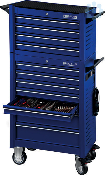Bestückter Werkstattwagen UNIVERSE + E-Power Elektroverteiler + Werkstattwagenaufsatz UNIVERSE + Dosenhalter + Papierrollenhalter + 379-tlg. Bestückung Blau