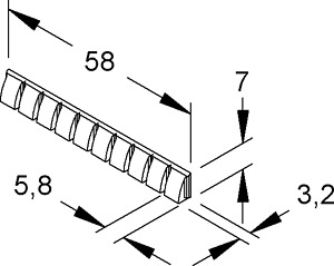 Bezeichnungselement, 10-fach Riegel, abbrechbar, zum Einstecken in die Halterung des Klemmgehäuses der Verbindungsklemmen, halogenfrei. Abmessungen (ca. Maße) H x B x L : 7 x 3,2 x 58 mm Aufschrift : L1 Werkstoff : ASA (Acrylsäureester-Styrol-Acrylnitril) für Verbindungsklemmen : B63, B163, B253, B65, B165, B255 Farbton : reinweiß RAL : 9010 (ähnlich)