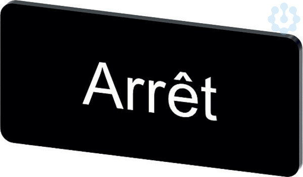 Bezeichnungsschild zum Schnappen oder Kleben auf Schildträger, Schildgrösse 12,5x27 mm, Schild schwarz, Schrift weiß, mit Beschriftung: Arrêt Bezeichnungsschild zur Beschriftung der SIRIUS ACT Befehls- und Meldegeräte.Unter dem Markennamen SIRIUS ACT bietet Siemens ein einzigartiges Portfolio an Befehls- und Meldegeräten mit weltweiten Produkt-Zulassungen in drei modernen Designreihen aus robustem Echtmetall und hochwertigem Kunststoff.Das innovative Aufschnappkonzept vereinfacht die Montage so weit, dass dafür nur eine Hand und kein Spezialwerkzeug erforderlich ist. Als Montagebohrungen genügen nutfreie Löcher, da bereits ein 100%iger Verdrehschutz integriert ist.Dank der durchgängig hohen Schutzart sind die robusten Geräte industrietauglich und für den Außeneinsatz geeignet. Sogar die Reinigung mit Hochdruckstrahl ist möglich. Weder Staub, Öle noch aggressive Laugen können den zuverlässigen Betrieb stören.Neben der Standardverdrahtung können die meisten Geräte auch über PROFINET, AS-Interface oder IO-Link an die Steuerung angebunden werden. Damit reduzieren Sie Ihren Verdrahtungsaufwand, minimieren Fehlerquellen und gewinnen mehr Flexibilität.Komfortabel unterstützt der grafische Online-Konfigurator bei Auswahl und Bestellung von Einzelgeräten, Gehäusen und Beschriftungen. Umfangreiche Dokumentation (z.B. Handbuch, 3D-Daten, Anschlussdiagramm) ist verfügbar.Umfangreiches optionales Zubehör (z.B. Beschriftungsschilder, für Schutz- und Zugangssicherung, Handhaben, Gehäusezubehör) verfügbar.SIRIUS ACT - Performance in Action beim Befehlen und Melden. Einfach montiert, einfach stark, einfach perfekt.