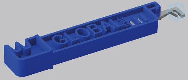 Biegewerkzeug für 3-Phasen-Stromschienen.Bei bauseits abgelängten Stromschienen müssen die Enden der Kupferleiterabgewinkelt werden, um eine elektrische Verbindung herstellen zu können.