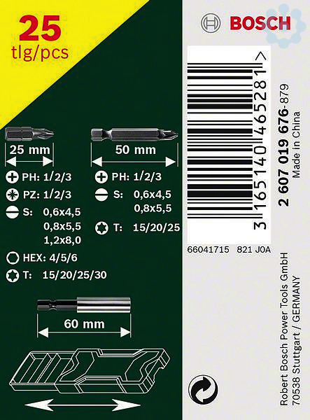 Mini-X-Line-Schrauberbit-Set, 25-teilig. Für praktisch jede Aufgabe bestens ausgerüstet: Universelles Basis-Set für alle gängigen Schraub- und Montagearbeiten. 24 Schrauberbits für die 5 wichtigen Schraubentypen, in allen gängigen Größen, 25 und 50 mm lang, für alle Befestigungsarbeiten in Haus und Garage. Magnetischer Universalhalter für schnellen Bitwechsel und guten Halt der Schraube im Bit. Alles parat mit einem Griff. Praktische Kunststoffbox mit übersichtlicher Anordnung der enthaltenen Zubehörteile. Für alle Elektrowerkzeugmarken und Handschraubendreher geeignet. Inhalt des Sets: 16 Schrauberbits, Länge: 25 mm, PH 1, PH 2, PH 3, PZ 1, PZ 2, PZ 3, SL 4,5, SL 5,5, SL 8,0, HEX 4, HEX 5, HEX 6, T 15, T 20, T 25, T 30, 8 Schrauberbits, Länge: 50 mm, PH 1, PH 2, PH 3, SL 4,5, SL 5,5, T 15, T 20, T 25, 1 Universalhalter, magnetisch.