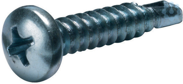 Blechschraube (Bohrschraube) nach DIN 7504 m (vormals N), selbstbohrend, Stahl gehärtet, verzinkt,Halbrund-/Linsenkopf mit Phillips-Kreuzschlitz, Blechschraubengewinde nach DIN 7970. Ausführung: Ø-4,8 mm; Länge: 25 mm; für Kreuzschlitz-Phillips Größe: 2; VE: 100.