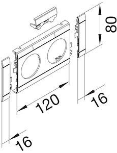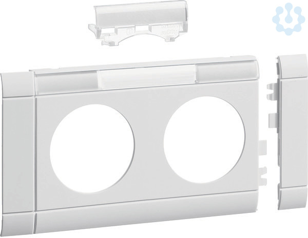 Blende 2-fach Steckdose zu Oberteil 80mm beschriftbar anreihbar hfr reinweiß. Blende modular mit Beschriftungsfeld für Kanalsteckdosen 2-fach, schnittkaschierend und anreihbar.