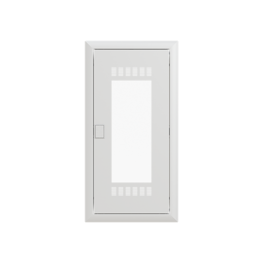 Blendrahmen und >wifi< Tür mit Lüftungsöffnungen und Kunststoffeinsatz für verbessertes wifi Signal, passend zu Stromkreisverteiler UK64…, Stahlblech pulverbeschichtet, Farbe: alpinweiß, RAL 9016, der Tip-in-Türverschluss besticht durch sein modernes Design und die einfache Bedienbarkeit, für mehr Sicherheit ist ein Sicherheitsschloss als Zubehör erhältlich, leichtes Abnehmen von Blendrahmen und Tür mit Putzausgleichsmöglichkeit
