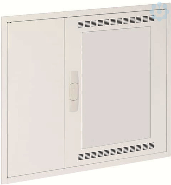Blendrahmen mit Doppel-Stahlblechtüren, rechte Tür mit Kunststoffeinsatz, belüftet und WiFi-freundlich mit Standardschloss ZB113, für den UL Kleinverteiler UL43, pulverbeschichtet, Farbe: weiß, RAL 9016.