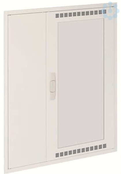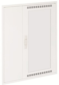 Blendrahmen mit Doppel-Stahlblechtüren, rechte Tür mit Kunststoffeinsatz, belüftet und WiFi-freundlich mit Standardschloss ZB113, für den UL Kleinverteiler UL63, pulverbeschichtet, Farbe: weiß, RAL 9016.