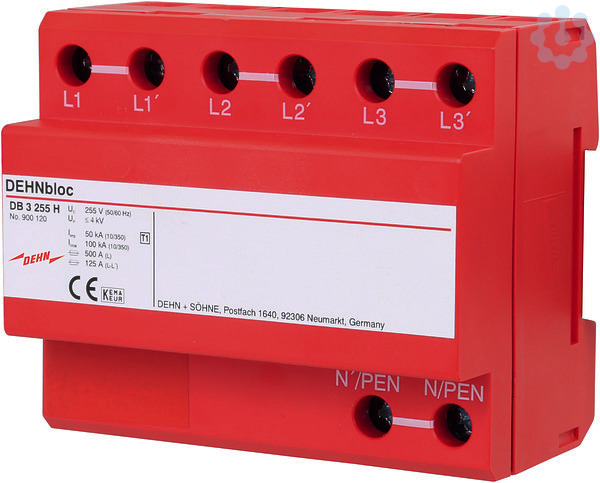 Dreipoliger, Blitzstromableiter DEHNbloc H, Typ 1 nach EN 61643-11 auf Funkenstreckenbasis. RADAX-Flow-Funkenstreckentechnologie mit hoher Folgestrombegrenzung. Zum Schutz von Niederspannungs-Verbraucheranlagen vor Überspannungen auch bei direkten Blitzeinschlägen. Zum Einsatz im Blitz-Schutzzonen-Konzept an den Schnittstellen 0A – 1.