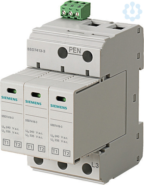 Blitzstromableiter T1/T2, UN 240/400V, UC 335V A.C., Schutzbausteine steckbar, 3+0 Schaltung (TN-C), Breite 54mm mit Fernmeldung Überspannungsschutzgeräte zum Schutz vor Überspannungen in elektrischen Anlagen. Die Überspannungsschutzgeräte von Siemens, als wichtiger Bestandteil der SENTRON Schutzkomponenten für die Elektroinstallation, bieten effektiven Schutz bei Blitz und Überspannungen infolge atmosphärischer Einflüsse oder Schaltvorgängen. Komfortable Montage- und Anschlusstechnik sowie ein durchgängiges Design sind die Kennzeichen der Gerätefamilie. Ob für Infrastruktur oder für industrielle Anforderungen, Siemens bietet Überspannungsschutzgeräte für alle Anwendungen und jedes Einsatzgebiet. Die Siemens Überspannungsschutzgeräte zeichnen sich vor allem aus durch: 1. Effektiver Investitions- und Anlagenschutz vor Blitz und Überspannungen. 2. Für jeden Anwendungsfall der richtige Blitz-/ und Überspannungsschutz (Typ1 bis 3). 3. Fernmeldekontakt zum externen Upload der Zustandsanzeige. 4. Zuverlässige Sicherheit bei der Installation dank standardmäßig enthaltenem Umgreif- und Berührungsschutz. 5. Werkzeugloses Lösen von der Hutschiene. 6. Klar ersichtliche Fehleranzeige. 7. Datamatrix-Code vorne am Gerät bietet schnell und einfach alle Infos rund um den Blitz- und Überspannungsschutz. 8. Optimale Technik für Ihre Sicherheit - nur von Siemens.