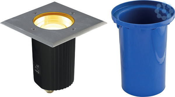 Der Leuchtenkörper ist aus Kunststoff, die Abdeckplatte hingegen aus V2A-Edelstahl gefertigt. Die Kabeleinführung erfolgt über die am Boden befindliche Kabelverschraubung, welche für Kabel bis 9mm Durchmesser geeignet ist. Die zweite im Lieferumfang befindliche Kabelverschraubung kann optional an der Leuchte angebracht werden, wodurch eine Durchverdrahtung problemlos möglich ist. Es besteht die Möglichkeit, die Leuchte ohne den im Lieferumfang enthaltenen Kunststoff-Einbautopf zu montieren, in diesem Fall beträgt die Einbautiefe 180mm und der benötigte Lochausschnitt 137mm. Das mitgelieferte GU10-LED-Leuchtmittel kann bei Bedarf jederzeit ausgetauscht werden. Die maximale Überfahrgeschwindigkeit beträgt 20km/h, der Schwenkwinkel beträgt 30°.