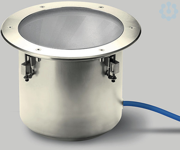 BEGA Bodeneinbauleuchte 84231RK27 für den Einbau in runde Ausschnitte, überrollbar für Druckbelastung bis 2.000 kg (~20 kN). Rutschhemmendes Glas nach DIN 51130 R 13, mattiert. Scheinwerfer, Wallwasher. Asymmetrische Lichtstärkeverteilung für weichgezeichnete Beleuchtungseffekte ohne harte Abrisskegel auf der iluminierten Fläche. LED, 30 W Leuchten-Anschlussleistung, Leuchten-Lichtstrom 2496 lm, Halbstreuwinkel 40/55°, Farbtemperatur 4000 K. Farbwiedergabeindex (CRI) > 80. Mit austauschbarem BEGA LED-Modul mit Übertemperaturschutz und einer Lebenserwartung von mindestens 50.000 Betriebsstunden. 20-jährige Nachliefergarantie auf das LED-Modul und die Verschleißteile. Mit BEGA Ultimate Driver® LED-Netzteil, DALI-steuerbar, 220-240 V, 0/50-60 Hz. Schutzart IP 68 10 m. Leuchte aus Edelstahl, Werkstoff-Nr. 1.4301. Reflektoroberfläche aus eloxiertem Reinstaluminium. Mit eingebautem Diffusor. Mit fest angeschlossener, wasserbeständiger Anschlussleitung 07RN8-F 5 G 1 qmm, Länge 1,8 m, mit eingebautem Wasserstopper und 1,2 m PVC-Installationsrohr. Leuchtendurchmesser 330 mm, Einbautiefe 225 mm. Einbauöffnung Ø 300 mm.