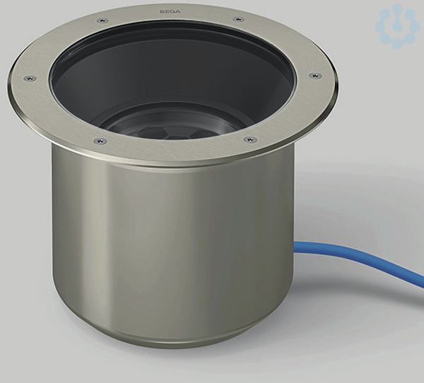 BEGA Bodeneinbauleuchte 84631K4, überrollbar für Druckbelastung bis 2.000 kg (~20 kN). Fokussiert-streuende Lichtstärkeverteilung mit minimalem Streulichtanteil. Innenliegendes Raster mit maximal lichtabsorbierender ultraschwarzer Lackierung und Polymerlinse. Optisches System 0-30° schwenkbar und um 360° stufenlos drehbar. LED, 34,4 W Leuchten-Anschlussleistung, Leuchten-Lichtstrom 3260 lm, Halbstreuwinkel 25°, Farbtemperatur 4000 K. Farbwiedergabeindex (CRI) > 80. Mit austauschbarem BEGA LED-Modul mit Übertemperaturschutz und einer Lebenserwartung von mindestens 50.000 Betriebsstunden. 20-jährige Nachliefergarantie auf das LED-Modul und die Verschleißteile. Mit BEGA Ultimate Driver® LED-Netzteil, DALI-steuerbar, 220-240 V, 0/50-60 Hz. Schutzart IP 68 10 m. Leuchte aus Edelstahl, Werkstoff-Nr. 1.4301. Sicherheitsglas klar. 1,8 m wasserbeständige Anschlussleitung 07RN8-F 5 G 1 qmm mit eingebautem Wasserstopper und 1,2 m PVC-Installationsrohr. Leuchtendurchmesser 330 mm, Einbautiefe 225 mm.