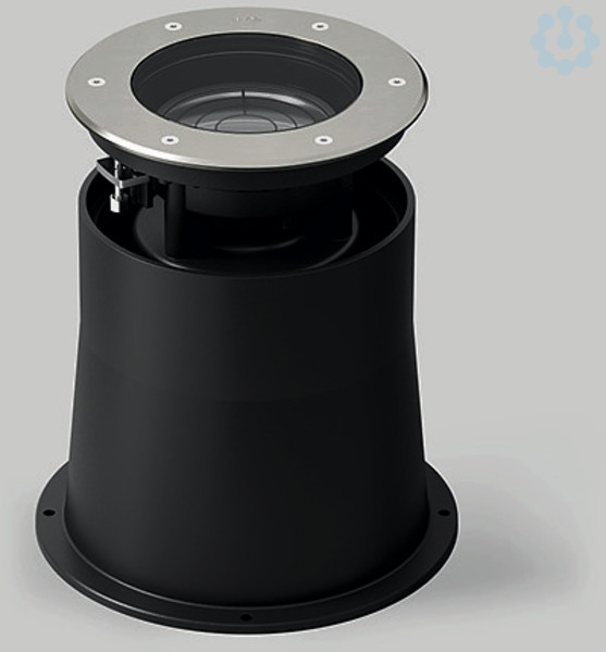 BEGA Bodeneinbauleuchte 84895K4, überrollbar für Druckbelastung bis 5.000 kg (~50 kN) mit einstellbarer Lichtstärkeverteilung. Optisches System 0-25° schwenkbar und um 360° stufenlos drehbar. Fokussierte Lichtstärkeverteilung mit eingebautem Raster zur Streulichtreduzierung. LED, 14,3 W Leuchten-Anschlussleistung, Leuchten-Lichtstrom 935 lm, Halbstreuwinkel 9°, Farbtemperatur 4000 K. Farbwiedergabeindex (CRI) > 80. Mit austauschbarem BEGA LED-Modul mit Übertemperaturschutz und einer Lebenserwartung von mindestens 50.000 Betriebsstunden. 20-jährige Nachliefergarantie auf das LED-Modul und die Verschleißteile. Mit BEGA Ultimate Driver® LED-Netzteil, DALI-steuerbar, 220-240 V, 0/50-60 Hz. Schutzart IP 68 10 m. Leuchten- und Einbaugehäuse aus hochkorrosionsfestem Aluminium. Beschichtungstechnologie BEGA Tricoat® Druckaufnahmering aus glasfaserverstärktem Kunststoff. Abdeckring aus Edelstahl, Werkstoff-Nr. 1.4301. Sicherheitsglas klar. Reflektoroberfläche aus eloxiertem Reinstaluminium. Mit BEGA Hybrid Optics® : Hocheffiziente und verlustarme Lichtverteilung durch Reflektor und optischer Linse. 1,8 m wasserbeständige Anschlussleitung 07RN8-F 5 G 1 qmm mit eingebautem Wasserstopper und 1,2 m PVC-Installationsrohr. Leuchtendurchmesser 205 mm, Einbautiefe 220 mm. Einbauöffnung Ø 250 mm.
