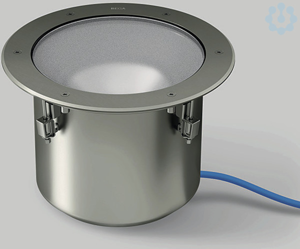 BEGA Bodeneinbauleuchte 84793RK3 für den Einbau in runde Ausschnitte, überrollbar für Druckbelastung bis 2.000 kg (~20 kN). Rutschhemmendes Glas nach DIN 51130 R 13, mattiert. Mit BEGA Hybrid Optics® : Hocheffiziente und verlustarme Lichtverteilung durch Reflektor und optischer Linse. Rotationssymmetrisch breitstreuende Lichtstärkeverteilung. Optisches System 0-30° schwenkbar und um 360° stufenlos drehbar. LED, 38,5 W Leuchten-Anschlussleistung, Leuchten-Lichtstrom 3017 lm, Halbstreuwinkel 64°, Farbtemperatur 3000 K. Farbwiedergabeindex (CRI) > 80. Mit austauschbarem BEGA LED-Modul mit Übertemperaturschutz und einer Lebenserwartung von mindestens 50.000 Betriebsstunden. 20-jährige Nachliefergarantie auf das LED-Modul und die Verschleißteile. Mit BEGA Ultimate Driver® LED-Netzteil, DALI-steuerbar, 220-240 V, 0/50-60 Hz. Schutzart IP 68 10 m. Leuchte aus Edelstahl, Werkstoff-Nr. 1.4301. Reflektoroberfläche aus eloxiertem Reinstaluminium. Optische Silikonlinse. 1,8 m wasserbeständige Anschlussleitung 07RN8-F 5 G 1 qmm mit eingebautem Wasserstopper und 1,2 m PVC-Installationsrohr. Leuchtendurchmesser 330 mm, Einbautiefe 225 mm. Einbauöffnung Ø 300 mm.