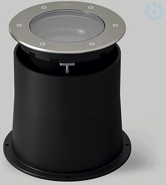 BEGA Bodeneinbauleuchte 84898RK4, überrollbar für Druckbelastung bis 5.000 kg (~50 kN) mit einstellbarer Lichtstärkeverteilung. Rutschhemmendes Glas nach DIN 51130 R 13, mattiert. Optisches System 0-25° schwenkbar und um 360° stufenlos drehbar. Fokussierte Lichtstärkeverteilung mit eingebautem Raster zur Streulichtreduzierung. LED, 28 W Leuchten-Anschlussleistung, Leuchten-Lichtstrom 1214 lm, Halbstreuwinkel 8°, Farbtemperatur 4000 K. Farbwiedergabeindex (CRI) > 80. Mit austauschbarem BEGA LED-Modul mit Übertemperaturschutz und einer Lebenserwartung von mindestens 50.000 Betriebsstunden. 20-jährige Nachliefergarantie auf das LED-Modul und die Verschleißteile. Mit BEGA Ultimate Driver® LED-Netzteil, DALI-steuerbar, 220-240 V, 0/50-60 Hz. Schutzart IP 68 10 m. Leuchten- und Einbaugehäuse aus hochkorrosionsfestem Aluminium. Beschichtungstechnologie BEGA Tricoat® Druckaufnahmering aus glasfaserverstärktem Kunststoff. Abdeckring aus Edelstahl, Werkstoff-Nr. 1.4301. Reflektoroberfläche aus eloxiertem Reinstaluminium. Mit BEGA Hybrid Optics® : Hocheffiziente und verlustarme Lichtverteilung durch Reflektor und optischer Linse. 1,8 m wasserbeständige Anschlussleitung 07RN8-F 5 G 1 qmm mit eingebautem Wasserstopper und 1,2 m PVC-Installationsrohr. Leuchtendurchmesser 240 mm, Einbautiefe 230 mm. Einbauöffnung Ø 275 mm.