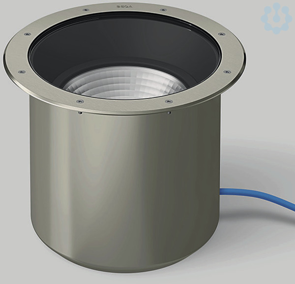 BEGA Bodeneinbauleuchte 84893K4, überrollbar für Druckbelastung bis 2.000 kg (~20 kN). Mit BEGA Hybrid Optics® : Hocheffiziente und verlustarme Lichtverteilung durch Reflektor und optischer Linse. Rotationssymmetrisch breitstreuende Lichtstärkeverteilung. Optisches System 0-30° schwenkbar und um 360° stufenlos drehbar. LED, 76 W Leuchten-Anschlussleistung, Leuchten-Lichtstrom 7396 lm, Halbstreuwinkel 56°, Farbtemperatur 4000 K. Farbwiedergabeindex (CRI) > 80. Mit austauschbarem BEGA LED-Modul mit Übertemperaturschutz und einer Lebenserwartung von mindestens 50.000 Betriebsstunden. 20-jährige Nachliefergarantie auf das LED-Modul und die Verschleißteile. Mit BEGA Ultimate Driver® LED-Netzteil, DALI-steuerbar, 220-240 V, 0/50-60 Hz. Schutzart IP 68 10 m. Leuchte aus Edelstahl, Werkstoff-Nr. 1.4301. Sicherheitsglas klar. Reflektor aus eloxiertem Reinstaluminium. Optische Silikonlinse. 1,8 m wasserbeständige Anschlussleitung 07RN8-F 5 G 1 qmm mit eingebautem Wasserstopper und 1,2 m PVC-Installationsrohr. Leuchtendurchmesser 410 mm, Einbautiefe 310 mm.