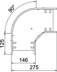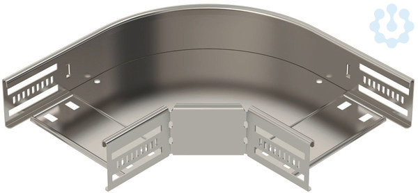 90°-Bogen zum Erstellen einer horizontalen Abzweigung, Formteil für rast- und schraubbare Kabelrinnen Seitenhöhe 60 mm. Schraubenlose Montage mit Doppelklemmen oder Schraubverbindung mit Flachrundschrauben FRS und Kombimuttern M6. Einsetzbar im Innen- und Außenbereich. Befestigungsmaterial muss separat bestellt werden.