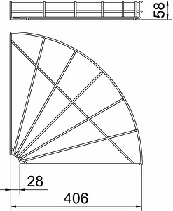 Bogen 90° horizontal für Gitterrinnen mit der Seitenhöhe 55 mm.