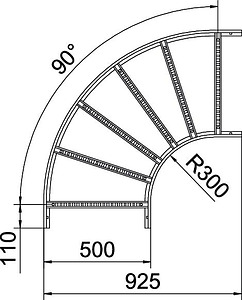 Bogen 90° horizontal mit geschweißter Sprosse für alle Kabelleitertypen mit der Seitenhöhe 60 mm.