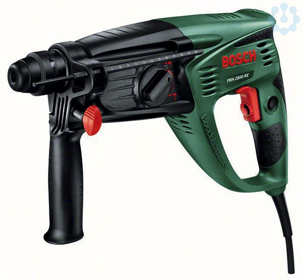 Bohrhammer PBH 2800 RE, Leistungskraft für schwierige Bohr-, Hammer- und Meißelarbeiten, 720-W-Motor und pneumatisches Hammerwerk mit 2,6 Joule für schwierige Anwendungen, Überlastkupplung für Anwender- und Werkzeugschutz gegen Verklemmen oder Überlast, Hämmern und Meißeln in Beton und Mauerwerk oder Bohren in Fliesen, Holz und Metall, Meißelfunktion mit Vario Lock bietet zahlreiche Meißelpositionen zur Auswahl, Bohrt Durchmesser bis 26/30/13 mm in Beton/Holz/Metall bei einem Gewicht von nur 3,0 kg, Flachmeißel (2 609 255 570), Tiefenanschlag (2 603 001 019), Zusatzhandgriff (2 602 025 125), Tragekoffer