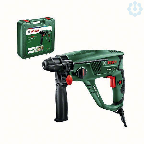 Bohrhammer PBH 2100 RE, Leicht und leistungsstark für müheloses Bohren, Hämmern und Meißeln, 550-W-Motor und pneumatisches Hammerwerk mit 1,7 Joule für allgemeine Anwendungen, SDS plus-Bohrfutter für einen schnellen, werkzeuglosen Zubehörwechsel, Hämmern und Meißeln in Beton und Mauerwerk oder Bohren in Fliesen, Holz und Metall, Meißelfunktion mit Vario Lock bietet zahlreiche Meißelpositionen zur Auswahl, Bohrt Durchmesser bis 20/30/13 mm in Beton/Holz/Metall bei einem Gewicht von nur 2,2 kg, Tiefenanschlag (2 603 001 019), Zusatzhandgriff (2 602 025 102), Tragekoffer