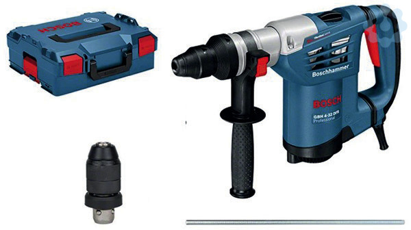Bohrhammer mit SDS plus GBH 4-32 DFR, Tiefenanschlag 310 mm (1 613 001 003); Maschinentuch; L-BOXX 136 (1 600 A01 2G0); Schnellwechselbohrfutter 13 mm (2 608 572 212); Wechselfutter SDS plus (2 608 572 213); Zusatzhandgriff (2 602 025 176); Fetttube (ET-Nr. 1 615 430 010); 1/1 L-BOXX-Einlage für Gerät (1 600 A00 2VH)