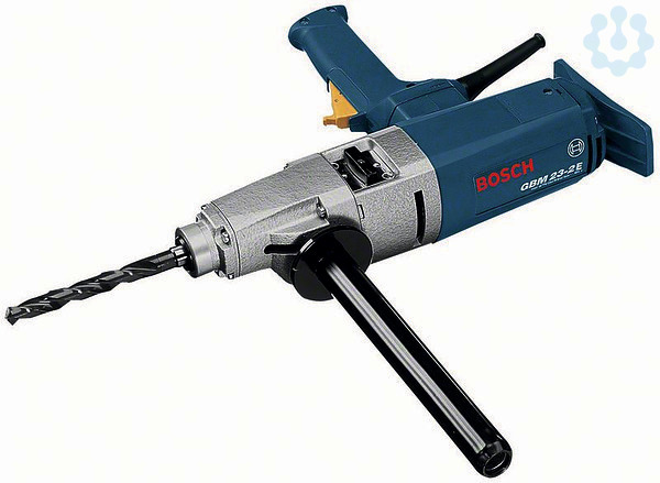 Bohrmaschine GBM 23-2 E. Leistungsstarke 2-Gang-Bohrmaschine für Präzisionsbohrungen. Kraftvoller 1.150-Watt-Motor für präzises Bohren in Stahl bis zu einem Durchmesser von 23 mm. Kreuzgriff und Andruckplatte für eine optimale Kraftübertragung bei Arbeiten in zähen Materialien. Regelelektronik für präzises Anbohren. Im Lieferumfang enthalten: Zusatzgriff (ET-Nr. 1 600 763 010), Austreibkeil (1 601 030 009)