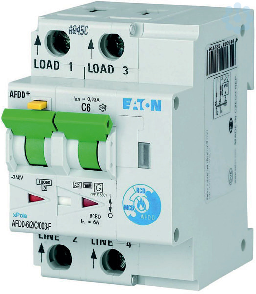 Hochwertiger Brandschutzschalter (Fehlerlichtbogen-Schutzeinrichtung) mit Fehlerstromschutzschalter/Leitungsschutzschalter Kombination, netzspannungsunabhängig, Kontaktstellungsanzeige rot - grün, Klemmen-Hintersteckschutz, tristabiler Rastschieber - ermöglicht Ausbau aus einem bestehenden Verschienungsverband, umfangreiches Zubehörprogramm nachträglich anbaubar, große Auswahl an Bemessungsfehlerströmen, Bemessungsströme bis 40 A, Auslösecharakteristiken B, C, D, Bemessungsschaltvermögen 10 kA, geeignet zur Verwendung im Freien (Baustrom- und Freiluftverteiler) bis -25 °C