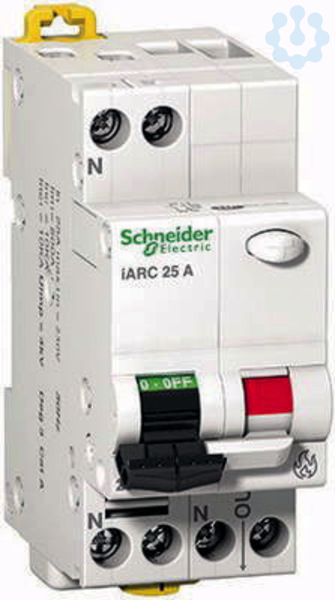 AFDD - Fehlerlichtbogenschutzeinrichtung (Brandschutzschalter), Acti 9 iArc. 1-polig+N, bis 25A. Ausschaltvermögen 10kA, Betriebspannung 230/240V AC. Beim Erkennen eines gefährlichen serielle oder parallele Fehlerlichtbögen löst der AFDD aus, um den fehlerhaften Abgang vom Stromnetz zu trennen. Zusätzlich zum Schutz von Fehlerlichtbögen schützt das Gerät gegen Kurzschluss, Überlast und Netzüberspannungen. Range Benefits- Fehlerlichtbögen können durch schlechte bzw. schadhafte Kabelisolierungen oder durch fehlerhafte Anschlüsse entstehen und einen Brand auslösen. Normen- IEC/EN 62606.