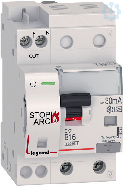Legrand Brandschutzschalter DX3 STOP ARC. Nach EN 62606, VDE 0665-10, EN 61009-1,VDE 0664-20. AFDD mit FI/LS-Schalter, 1-polig mit mitschaltendem Neutralleiter, Typ A für Wechsel- und pulsierende Gleichfehlerströme, unverzögert, Bemessungsfehlerstrom Idn 30 mA, Stoßstromfest bis 250 A. LS-Schutzschalterteil: B-Charakteristik, Bemessungsstrom In 16 A, Bemessungsschaltvermögen Icn 10 kA nach EN 61009-1, Bemessungsspannung Un 230 VAC, Bemessungsfrequenz 50 Hz, Energiebegrenzungsklasse 3, Befestigung auf Hutprofilschiene EN 60715 durch rastende Schnellbefestigungen, klare Information vorne auf jedem Gerät, eindeutige Schaltstellungsanzeige rot/grün am Schalthebel , mit Beschriftungsfenster, Neutralleiteranschluss rechts, verschienbar mit Legrand Gabelkammschienen. Anbau von Hilfsgeräten möglich. Auslöseanzeige: gelb=Fehlerstrom-oder Prüftastenauslösung, farblos= Kurzschluss-oder Handauslösung. Der Brandschutzschalter DX3 STOP ARC ist eine Gerätekombination aus Fehlerlichtbogen – Schutzeinrichtung AFDD mit Fehlerstromschutzschalter und Leitungsschutzschalter. Der einpolig geschützte und zweipolig geschaltete AFDD mit FI/LS-Schalter bietet eine sichere allpolige Abschaltung bei folgenden Fehlerbildern: Fehlerstrom gegen Erde, Überlast, Kurzschluss , parallele und serielle Fehlerlichtbögen. Mit LED Zustandsanzeige für das Erkennen des Betriebsstatus, Meldeanzeige für das visuelle erkennen bei Fehlerlichtbogen-Auslösung. Die Selbstüberwachung der AFDD-Einheit erfolgt über einen internen täglichen Selbsttest. Ursachen zur Entstehung von Fehlerlichtbögen sind zum Beispiel: Beschädigte Leiterisolierung durch Nägel, Schrauben oder Bohrungen, gequetschte Kabel oder Leitungen, lose oder fehlerhafte Klemmstellen in Steckdosen oder Schraubverbindungen.