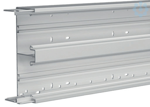 Brüstungskanal-Unterteil frontrastend hfr BRH 65x210mm Oberteil 2x80mm vw. Kanalunterteil zum Elektro-Installationskanal-System Brüstungskanal aus halogenfreiem Kunststoff nach DIN EN 50085-1 als Geräteeinbaukanal mit Oberteilbreite 80 mm zum Einbau handelsüblicher Geräte ohne Zusatzblenden. Halogenfreier Kunststoff ist flammwidrig und entwickelt in Verbindung mit Feuchtigkeit, z.B. Löschwasser, keine korrosiven Brandgase. Somit sind elektronische Geräte und Sachwerte besser geschützt. Mit Bodenlochung (allseitiger Bohrtolleranzausgleich) zur direkten Wandmontage und zusätzlicher Rechtecklochung zur werkzeuglosen Befestigung des Kanals mittels Clip-Technik auf Konsolen. Mit frontrastendem, werkzeuglosem Geräteeinbau zur Befestigung von Geräten und Geräteeinbaudosen mit Schnellbefestigung. Zusätzliches C-Profil als Geräteeinbaumöglichkeit. Kupplungen zur einfachen und passgenauen Kanalmontage, Trennwände und Leitungsrückhalteklammern als Zubehör erhältlich. Hinweis: Schall- und Brandschutz-Maßnahmen sind fachgerecht auszuführen.