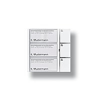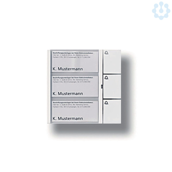 Bus-Tasten-Modul mit Namensschildtasche, 3 Namensschildern und 3 separaten Ruftasten mit Glockensymbol.