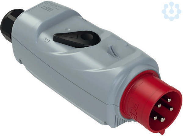 CEE-Stecker mit Schalter (EIN-AUS) 32A 5p 6h IP44; Gehäusematerial: PC/ABS; Nennstrom: 32A; Polzahl: 5 (3P+N+PE); Uhrzeit-Stellung: 6h; Nennspannung/Frequenz: 200/346V~ - 240/415V~ / 50+60Hz; Kontakte: Messing vernickelt; Anschlusstechnik: Schraubklemmen; Drehknebelschalter (AC22A 10kA) EIN/AUS, ohne Betriebsanzeige; Kabelverschraubung: M32; Schutzart: IP44