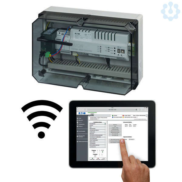 CGline+ Web-Controlller im Aufbaugehäuse inkl. WLAN Access Point sowie Tablet PC - Automatisches Prüf- und Steuerungssystem gem. DIN EN 62034 für bis zu 800 CGLine+ Einzelbatterieleuchten, aufteilbar in 4 Stränge mit jeweils 200 Leuchten (oder 2 Stränge mit jeweils 400 Leuchten). Für Sicherheitsbeleuchtungsinstallationen gem. DIN EN 50172, DIN V VDE V 0108-100 und DIN VDE 0100-560. Ein integrierter Web-Server ermöglicht eine komfortable Visualisierung, Steuerung und Überwachung aller angeschlossenen CGLine+ Leuchten von einem beliebigen Arbeitsplatz-PC im Intranet mit einem handelsüblichen Web-Browser ohne weitere spezielle Software. Die Übermittlung sämtlicher Daten und Befehle, von den Leuchten zum CGLine+ Web-Controller erfolgt über eine nicht geschirmte 2-adrige Busleitung (z.B. J-Y(ST)Y 2 x 2 x 0,8), verlegbar in freier Topologie, ohne Busabschlusswiderstände. Im CGLine+ System müssen die Leuchten nicht manuell adressiert werden. Werkseitig erhalten alle CGLine+ Leuchten bereits eine unverwechselbare Adresse, eine 6-stellige ID-Nummer im HEX-Code. Anhand dieser erfolgt bei der Inbetriebnahme eine automatische Erkennung aller angeschlossenen Leuchten am Controller. Zusätzlich kann jeder einzelnen Leuchte bei der Konfiguration eine numerische Kurzadresse und ein individueller Name zugeordnet werden (bis zu 20 Zeichen). So ist es möglich, diese Kennzeichnung zum Beispiel als Ortsbezeichnung zu verwenden. Die installierten CGLine+ Leuchten können physikalisch auf 4 Stränge aufgeteilt werden. Zusätzlich können die Leuchten logisch in bis zu 8 Zonen je Strang frei zugeordnet werden. Zonen können Bereiche sein, in denen die Leuchten räumlich zusammengefasst werden sollen, z.B. in einer Etage, in einem Bereich oder nur für einen Raum. Bei Verwendung von nur 2 Strängen ist eine Aufteilung in bis zu 16 Zonen pro Strang möglich. Funktions- und Betriebsdauertests werden automatisch vom CGLine+ Web-Controller aus gestartet. Hierzu können die Leuchten in bis zu 8 verschiedene Testgruppen aufgeteilt werden, um z.B. an nebeneinander installierten Leuchten nicht zum selben Zeitpunkt einen Betriebsdauertest zu starten. Der Zeitraum zwischen den Tests ist frei einstellbar. Ebenso ist ein manueller Start / Abbruch eines Funktions- oder Betriebsdauertests möglich. Bezogen auf alle Leuchten, eines Stranges, einer Zone oder nur für eine einzelne Leuchte. Die Kommunikation zwischen Controller und jeder einzelnen Leuchte wird zyklisch überwacht. Bei einer evtl. Busleitungsunterbrechung sorgt die zusätzlich integrierte Testfunktion in jeder CGLine+ Leuchte dafür, dass auch in diesem Fall die vorgeschriebenen Tests automatische durchgeführt und vor Ort an der Leuchte angezeigt werden. Alle Ergebnisse der Tests werden in einem elektronischen Prüfbuch für mindestens 4 Jahre abgespeichert. Dieses kann direkt über den Web-Browser eingesehen werden. Um weitere Auswertungen des Prüfbuches durchzuführen, kann das Prüfbuch direkt am Controller auf einen handelsüblichen USB-Stick gespeichert und mittels der CGLine+ PC-Software komfortabel an einem PC analysiert werden. Der integrierte Mail-Client versendet automatisch an bis zu 10 E-Mail Empfänger eine Mailbenachrichtigung mit Quittierfunktion für zuordnungsbare Ereignisse. Hierbei sind die 10 E-Mail-Adressen in 2 Mail-Empfängergruppen aufgeteilt, um eine Eskalation-Hierarchie zu erstellen. Eine im Web-Server integrierte Grundrissprogrammierung erlaubt es, die Leuchten übersichtlich im Web-Browser auf einem Gebäudegrundrissplan darzustellen. Es können pro Controller bis zu 30 Grundrissbilder geladen werden. Die Leuchten werden farblich mit ihrem Status im Grundriss dargestellt. Bei Berührung einer Leuchte mit dem Mauszeiger öffnet sich ein Statusfenster mit weiteren Informationen zur Leuchte. Ein integriertes Menü stellt alle im Intranet befindlichen CGLine+ Web-Controller übersichtlich auf einer Seite dar, und zeigt den aktuellen Status je Zone an. Die integrierte Hyperlinkfunktion vereinfacht die Navigation zu den verschiedenen WEB-Servern. Die Bedienung des Controllers ist passwortgeschützt, wobei zwischen Zugangsberechtigungen Benutzer und Administrator unterschieden wird. Weiterhin kann für alle Leuchten, eines Stranges, einer Zone oder nur für eine einzelne Leuchte in Betriebsruhezeiten die Notlichtfunktion blockiert werden (Dauerlichtleuchten sind ausgeschaltet und in bei einem Netzausfall schalten die Leuchten nicht auf Batteriebetrieb um). Außerdem können Leuchten, die im Normalbetrieb auf Dauerlicht geschaltet sind, aus der Ferne ausgeschaltet werden, wobei bei einem Netzausfall diese Leuchten automatisch auf Batteriebetrieb eingeschaltet werden. Auf einfache Weise kann der CGLine+ Web-Controller über die separat erhältliche CGLine+ PC-Software bequem konfiguriert werden. Bis zu 32 Controller mit je 800 Leuchten können über die optional erhältliche CGVision Visualisierung- und Überwachungssoftware zentral kontrolliert werden. In Summe sind somit bis zu 25.600 CGLine+ Einzelbatterieleuchten uneingeschränkt überwachbar. Der CGLine+ Web-Controller verfügt über 3 digitale Eingänge, davon sind 2 frei programmierbar und ein Eingang als Blockiereingang für alle Leuchten ausgeführt. Eine Ruhestromüberwachung (Differential-Schleifenüberwachung) im Blockiereingang erkennt zuverlässig einen Kurzschluss bzw. eine Unterbrechung und versetzt alle Leuchten in den Normalbetrieb. Ferner verfügt der CGLine+ Web-Controller über 2 frei zuordnungsbare Relaisausgänge (Wechselkontakt), um z.B. Störmeldungen an eine übergeordnete GLT weiterzuleiten. Technische Daten: Versorgungsspannung: 230V AC, 50/60 Hz; Leistungsaufnahme: