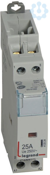Legrand Installationsschütz CX3, Spulenspannung AC 230 V, 2-polig, Ausführung: 2 Öffner, Bemessungsbetriebsstrom Ie 25 A/ 250 VAC, ohne Handschalter. Nach EN 61095, Gebrauchskategorie AC-1/AC-7a und AC-3/AC-7b, Installationsschütze zum Schalten von Lasten wie z.B. Lampengruppen, Motoren und Heizungen, mit Beschriftungsfenster, mit Schaltzustandsanzeige, Befestigung auf Hutprofilschiene EN 60715 durch rastende Schnellbefestigung, Anbau von Hilfsschaltern möglich.