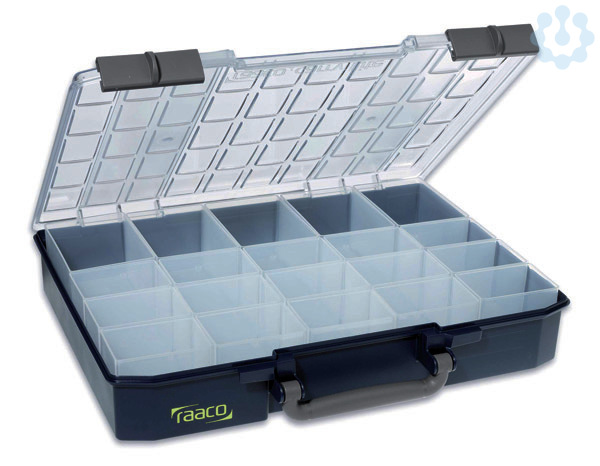 Carry-Lite 80 eine Individuelle Rastereinteilung erfolgt ohne Trennwände nur durch Einsatzfach 10 längst x 5 breit. Leichte und flexibel gestaltbare Aufbewahrungs- und Transportkoffer, Innenaufteilung jederzeit variierbar durch transparente Einlegefächer in vielen unterschiedlichen Größen, Koffer-Unterschale aus Polypropylen, Kofferdeckel aus klar-transparentem Polycarbonat, Deckel mit U-Profilen für verrutschsichere Aufbewahrung von Lagergut und loser Einsatzfach, ergonomischer Tragegriff, zwei stabile Schiebeverschlüsse, stapelbar, auch hochkant aufzustellen. mit 20 Einsätzen 413x330x80mm