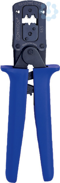 Rollpressung (Crimpung). Die Ader- und Isolationscrimpung erfolgt bei diesem Werkzeug in einem Arbeitsgang. Federunterstützte Werkzeugöffnung. Mit Sperrvorrichtung für gleichmäßig kontrollierte Pressergebnisse. Parallel geführte Pressbacken. Für Flachsteckverbindungen mit 4,8 mm Steckbreite.