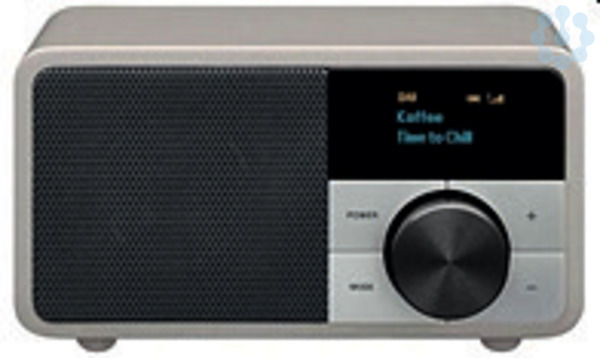 Kleines, klangstarkes FM- DAB Plus-Radio, Bluetooth fuer drahtloses Audio-Streaming, OLED-Display, integrierter Akku, externe Antennenbuchse mit Wurfantenne, Gehaeuse silber lackiert