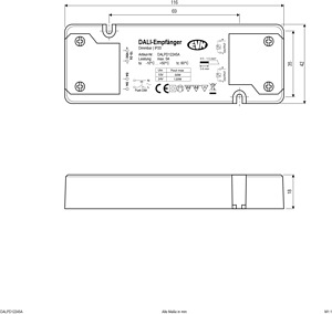 Der DALI-Dimmer-Controller kann für Unicolor Leuchten von 10-24V/DC verwendet werden und benötigt eine DALI-Adresse (automatische Adressen Einstellung). Die tatsächliche Eingangsspannung ist abhängig von der benötigten Spannung der zu versorgenden Leuchten. Der Dimmer kann wahlweise auch über Push-L gedimmt werden, jedoch ist in diesem Fall keine zeitgleiche Steuerung über DALI möglich. Anschlüsse: 1x Eingang für 10-24V/DC, 1x Eingang für DALI-BUS (wahlweise Push-L), 1x Ausgang für 10-24V/DC, max. 5A. Zur einfacheren Installation stehen sekundärseitig 2 Klemmstellen zur Verfügung, somit können beim Anschluss mehrerer Leuchten diese auf die beiden Klemmstellen aufgeteilt werden. Die Schraubklemmen sind für Kabel von 0,5mm² - 1,5mm² geeignet. Technische Daten: ta: -20°C - 50°C, tc: 60°C. Protokoll: DT6, DALI1.