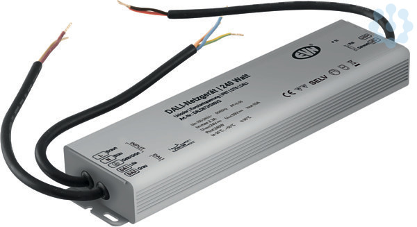 DALI-Dimmer-Empfänger mit integriertem Netzgerät für Unicolor-Leuchten mit manueller oder automatischer DALI Adressen Einstellung. Ein Zusätzliches Betriebsgerät ist nicht erforderlich, da der Empfänger gleichzeitig als solches fungiert. Optional ist der Empfänger auch über Push-L dimmbar. Anschlüsse: 1x Eingang für DALI-Bus oder Push-L, 1x Eingang für 100-240V/AC und 1x Ausgang für 24V/DC. Die Anschlussleitungen haben jeweils eine Länge von 24cm. Technische Daten: ta: -25°C - 50°C, tc: 90°C, Leistung: 0,1-240W, Powerfaktor: 0,95. Konform Standardprotokoll IEC 60929. Protokoll: DT6, DALI2.