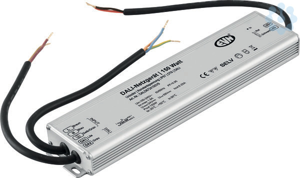 DALI-Dimmer-Empfänger mit integriertem Netzgerät für Unicolor-Leuchten mit manueller oder automatischer DALI Adressen Einstellung. Ein Zusätzliches Betriebsgerät ist nicht erforderlich, da der Empfänger gleichzeitig als solches fungiert. Optional ist der Empfänger auch über Push-L dimmbar. Anschlüsse: 1x Eingang für DALI-Bus oder Push-L, 1x Eingang für 100-240V/AC und 1x Ausgang für 24V/DC. Die Anschlussleitungen haben jeweils eine Länge von 24cm. Technische Daten: ta: -25°C - 50°C, tc: 90°C, Leistung: 0,1-150W, Powerfaktor: 0,95. Konform Standardprotokoll IEC 60929. Protokoll: DT6, DALI2.