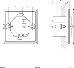 Mit dem DALI-Wandpanel kann ein Kanal angesteuert werden. Da es sich um ein RGBW-Wandpanel handelt, sind vier DALI Adressen nötig. Die unterschiedlichen Farben können über das Touch-Wheel eingestellt werden, ebenso können die Farben Rot, Grün, Blau und Weiß aber auch einzeln zu- und abgeschaltet werden. Zusätzlich zu den zehn gespeicherten Farbwechsel-Programmen ist es möglich bis zu vier Lichtszenen zu speichern. Natürlich ist auch das Dimmen mit dem Panel möglich. Da das Wandpanel als BUS-Geber fungiert ist der Einsatz der DALI Basisstation optional möglich, jedoch nicht zwingend nötig. Bei Betrieb als BUS-Geber (ohne DALI Basisstation) erfolgt der Anschluss an 230V, wobei maximal 50 Teilnehmer über ein Wandpanel gesteuert werden können. Außerdem können 3 weitere Wandpanel in das System mit eingebunden werden, welche über die BUS-Spannung des ersten Wandpanel (BUS-Geber) betrieben werden. Bei Betrieb mit der DALI Basisstation können max. 4 Wandpanel je Basisstation eingesetzt werden. Hierbei dürfen die Wandpanel nicht über 230V, sondern ausschließlich über die BUS-Spannung der DALI Basisstation betrieben werden. Darüber Hinaus besteht die Möglichkeit zwei Wandpanel über 230V in einem System zu betreiben, wobei nur eines der Wandpanel als BUS-Geber fungiert. Hierdurch können bis zu 100 Teilnehmer (50 je Panel) angesteuert werden. In dieses System können zwei zusätzliche Wandpanel über die BUS-Spannung mit eingebunden werden, wobei die steuerbare Teilnehmeranzahl unverändert bleibt. Die Montage ist ohne Probleme auf Schalterdosen möglich. Bitte beachten: Das Panel sendet einen Broadcast-Befehl, welcher alle Komponenten innerhalb eines BUS-Systems auf lineares Dimmen umstellt. Diese Funktion kann nicht abgeschaltet werden. Protokoll: DT6, DALI1.