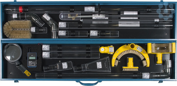 Trockenreinigungsset TRS MS nach DIN VDE 0682-621 zum Reinigen durch Absaugen unter Spannung bis 36kV / 15 ... 60 Hz von Transformatoren und Schaltanlagen in Innenraum- und Freiluftanlagen, komplett im passenden Transportbehälter. Speziell angepasste Arbeitsköpfe zur Intensivreinigung. Steckkupplungssystem zum schnellen Umrüsten der Arbeitsköpfe. Saugluftregulierung im Handhabebereich. Transparente Saugrohre für mehr Sicherheit.