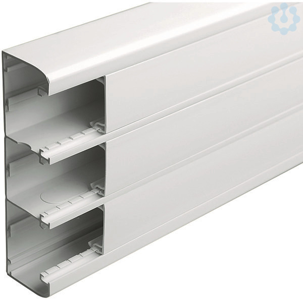 DLP Brüstungskanal 50 x 180 mm, zur direkten Montage von Mosaic™-Schaltermaterial, Lieferumfang: - Unterteil mit 3 Zügen mit integriertem Trennsteg zur Trennung von Daten- und Versorgungsleitungen - 3x Deckel (Breite 45 mm), Länge: 2000 mm. Der Trennsteg ist vorperforiert, sodass Leitungen problemlos zwischen den Kammern gewechselt werden können